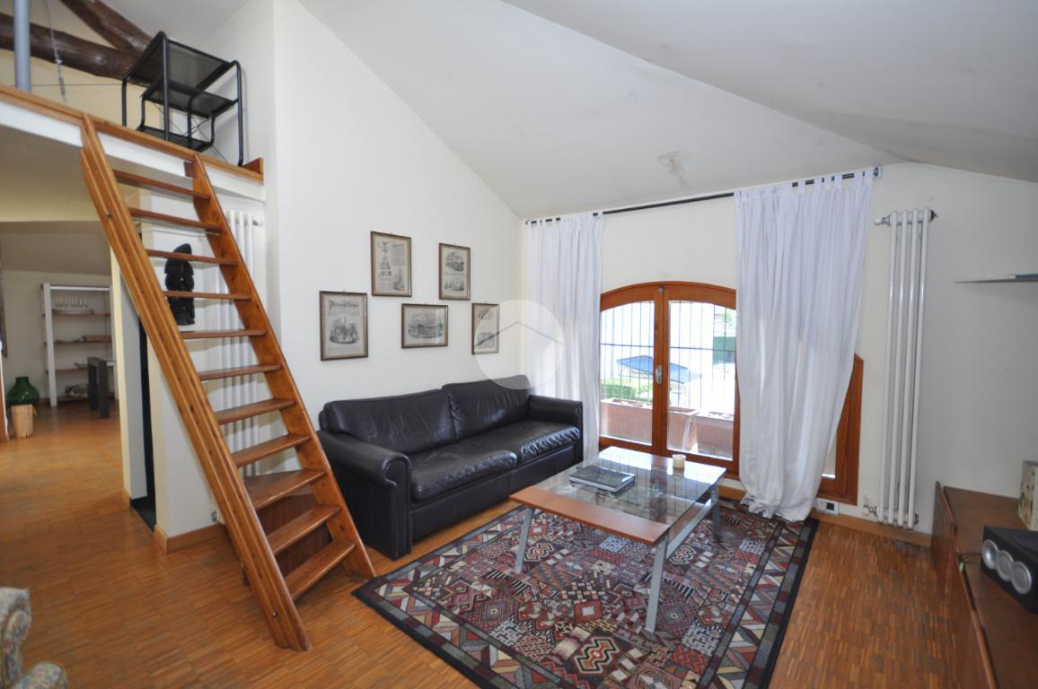 Particolarmente affascinante è l'appartamento situato al piano mansardato, il quale gode di un accesso indipendente, composto da un ingresso living su sala da pranzo adiacente alla cucina abitabile, soggiorno con un suggestivo soppalco che conduce ad un vano accessorio per un'eventuale terza camera da letto. Tramite il disimpegno si accede alla zona notte dove troviamo un bagno e due camere da letto, una di queste con bagno privato. Completano l'unità due comodi ripostigli.